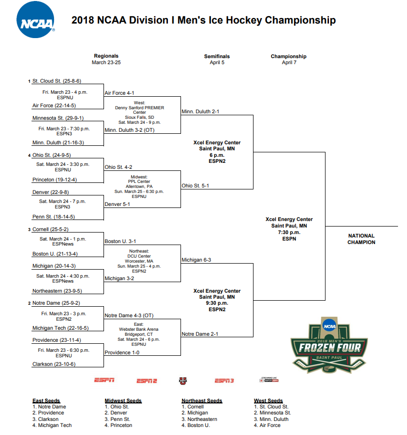 Here's a look at this year's bracket and how each Frozen Four team got to this point: