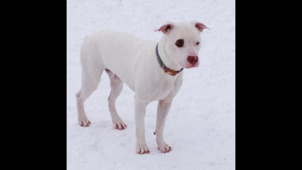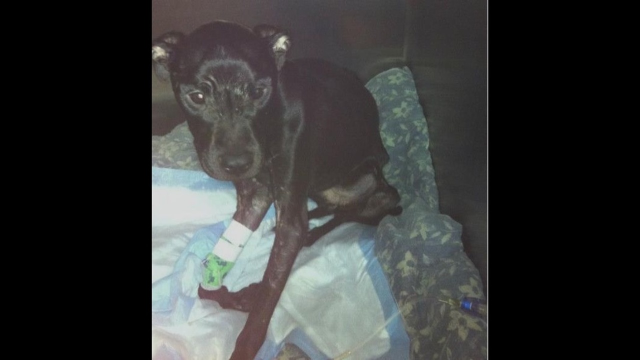 Another dog in Precourt's care named Shiner is recovering after being found badly emaciated.