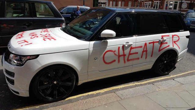 In what appears to be retaliation towards an unfaithful boyfriend, a London woman spray-painted the Range Rover of her (we assume ex) boyfriend, emblazoning it with the words "cheater" and "hope she was worth it."
