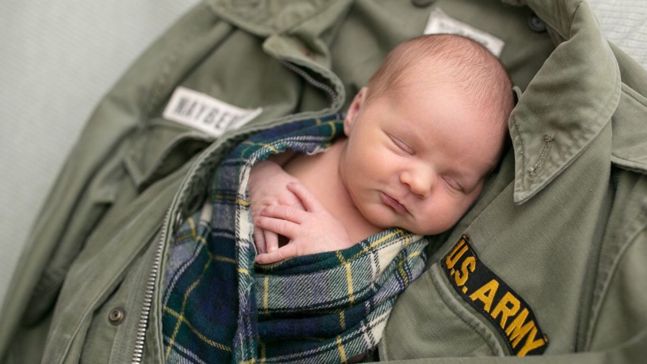A week later, we took Jack to a photographer's studio for his newborn photos. Along with the cute outfits and funny hats, I packed a very special "prop" -- Dad's Army jacket. He wore it when he served in Vietnam, but in recent years, it was his go-to coat for taking out the trash and other chores during the chilly months. As the photographer arranged the weathered coat under Jack, she pulled out a plaid piece of fabric. It was Dad's scarf. I instantly smiled. Dad always kept his scarf in the sleeve of his coat. I had almost taken it out when I packed up the jacket to bring, but left it in at the last moment.Â