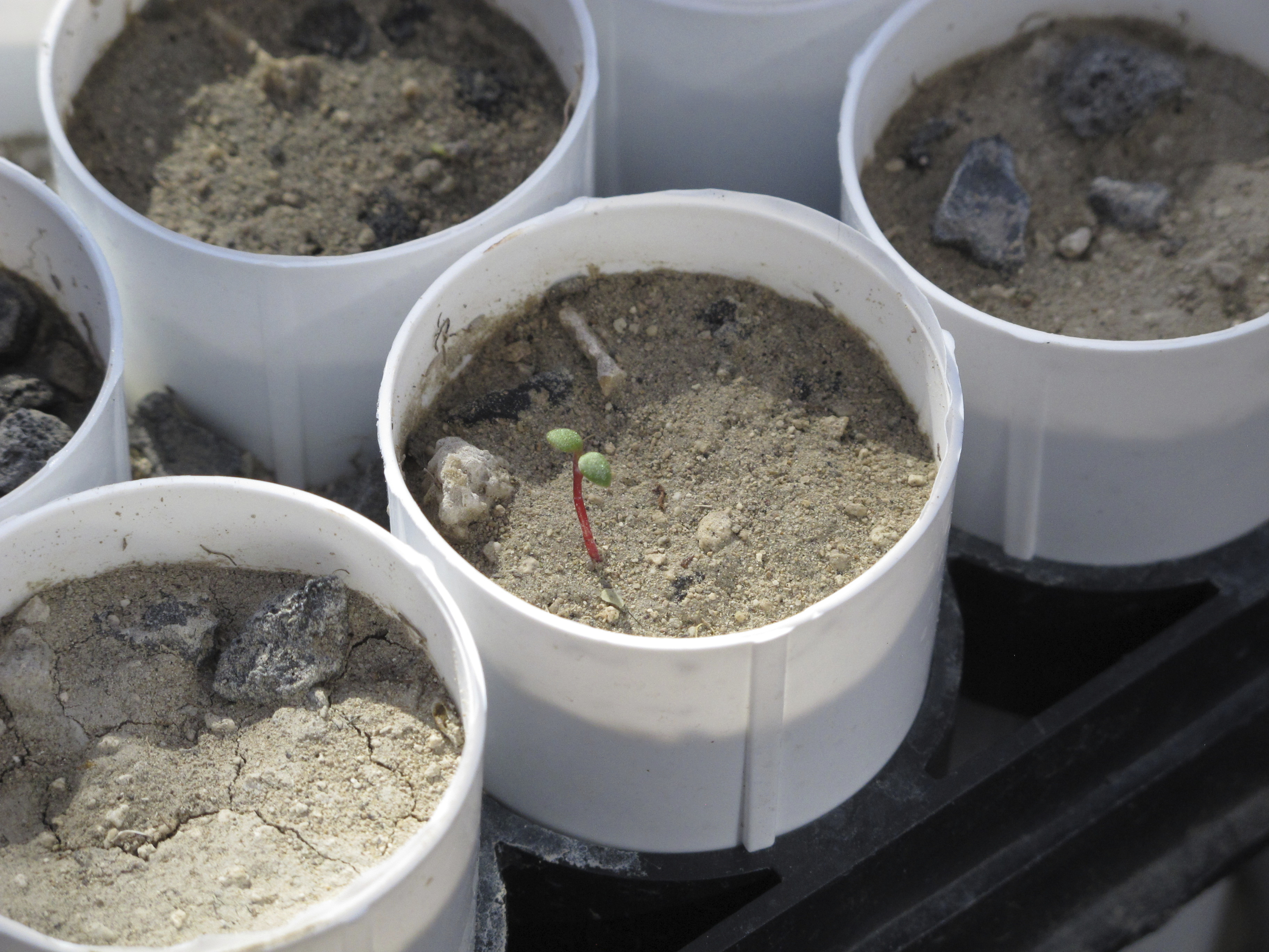 University researchers are doing their best to replicate the harsh desert conditions with poor soil quality at the greenhouse where they planted 3,276 Tiehm seeds in January.