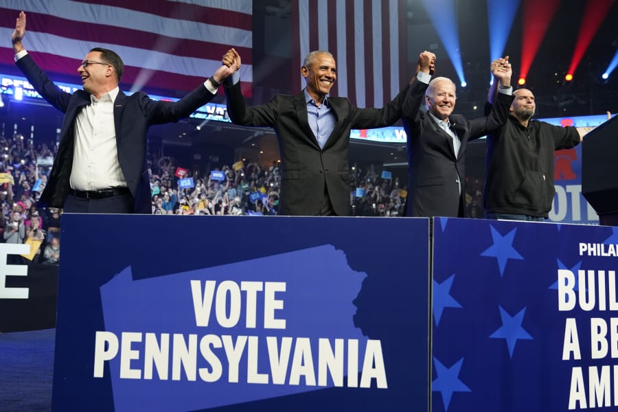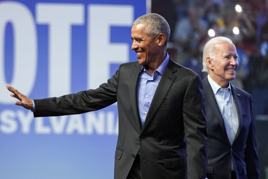 Later in the day, Biden shared the stage with Obama in Philadelphia, the former running mates campaigning together for the first time since Biden took office. In neighboring New York, even former President Bill Clinton, largely absent from national politics in recent years, was out defending his party.