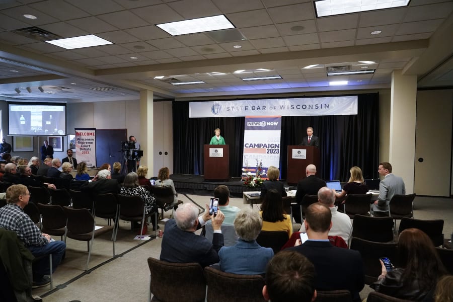 MADISON, Wis. – The liberal candidate for a seat on the Wisconsin Supreme Court didn't back down from her support for abortion rights or her belief that the state's Republican-drawn legislative maps are unfair during a debate Tuesday in which her GOP-backed opponent accused her of being “bought and paid for” by Democrats.