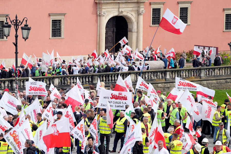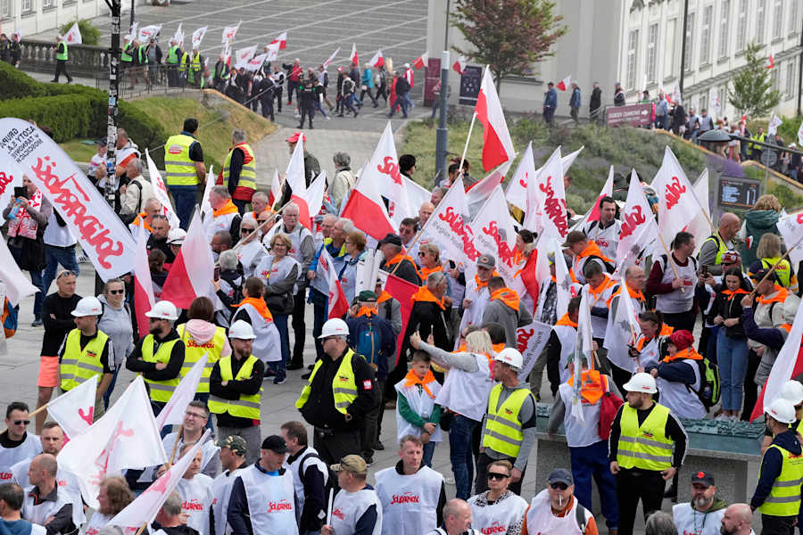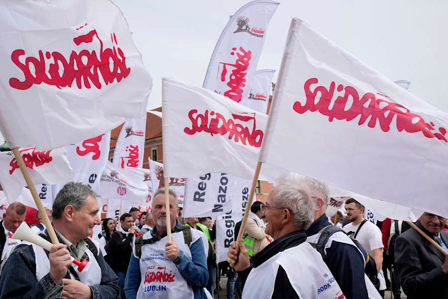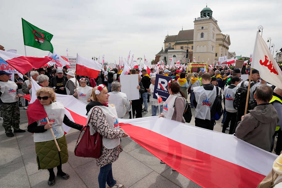 The demonstration came as Poland’s political parties campaign ahead of elections next month for the European Parliament. The protest was supported by Polish right-wing opposition party Law and Justice, which held power from 2015 until late last year and is looking to regain political momentum.