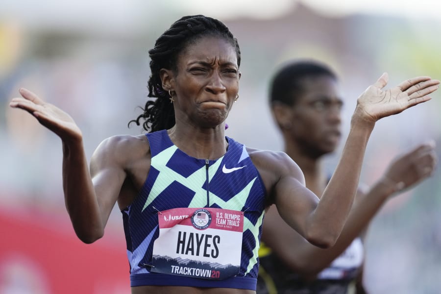 What made Sunday night even sweeter was that she got to celebrate with Hayes, who brought her 2-year-old son, Demetrius, onto the track and introduced him to one of the greatest sprinters ever.