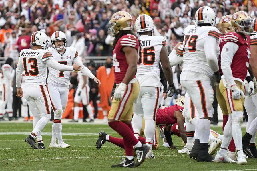 Dustin Hopkins kicked four field goals for the Browns (3-2) — the last with 1:40 left, capping a drive helped by a disputed unnecessary roughness call against San Francisco. Cleveland pulled off the upset without quarterback Deshaun Watson, who missed his second straight game with a bruised right shoulder.