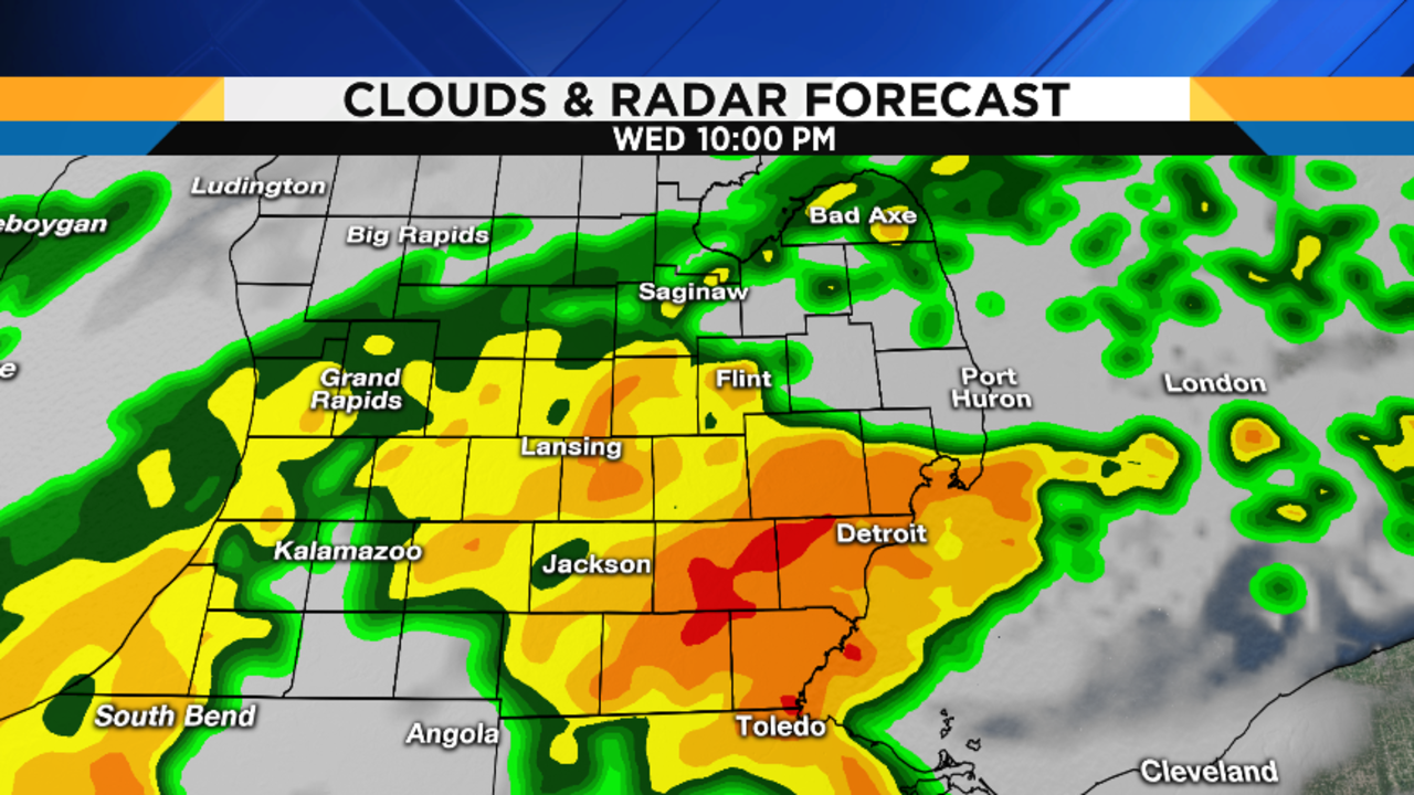 DETROIT – Light rain showers that were headed our way earlier today have pretty much fizzled out -- perhaps a stray sprinkle or very light rain drop is left.