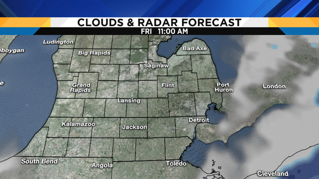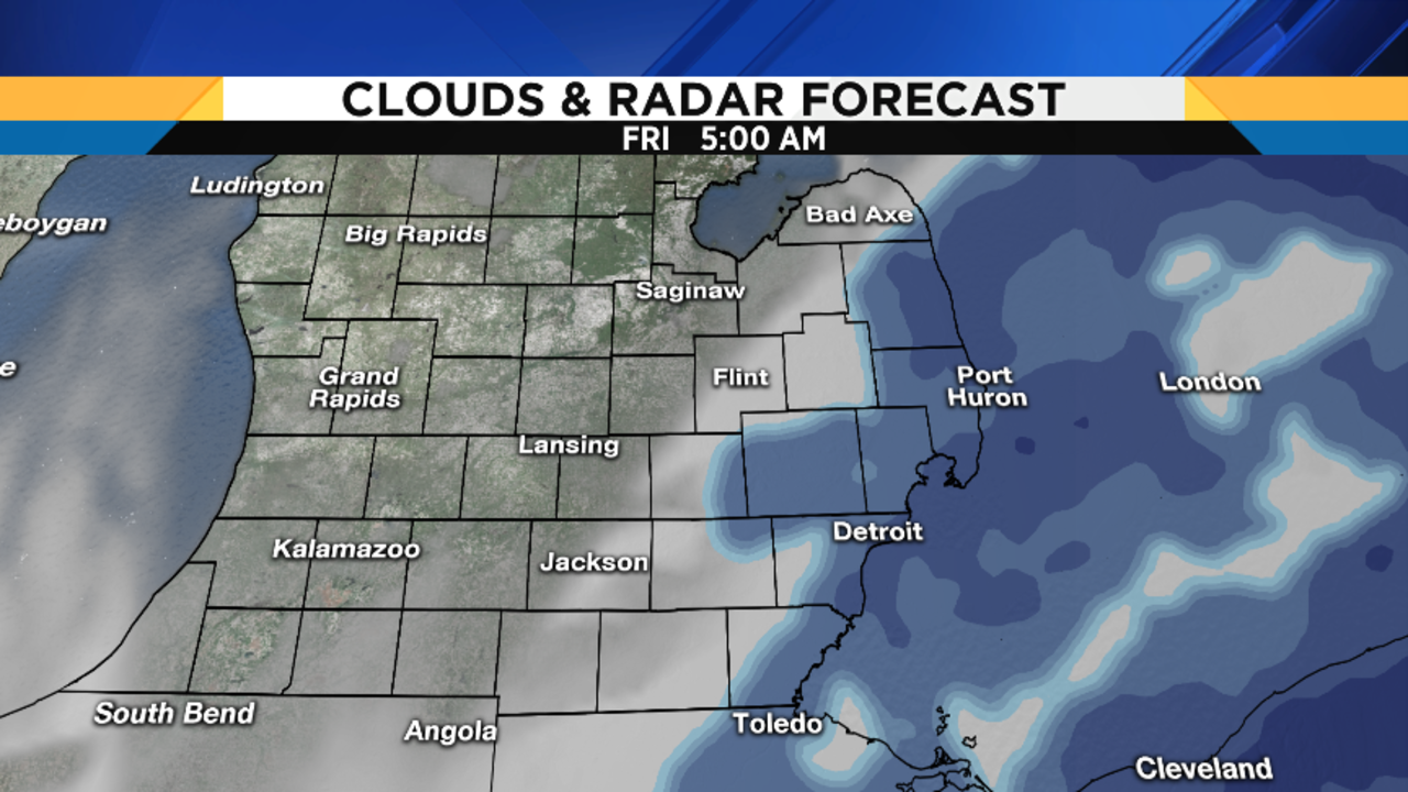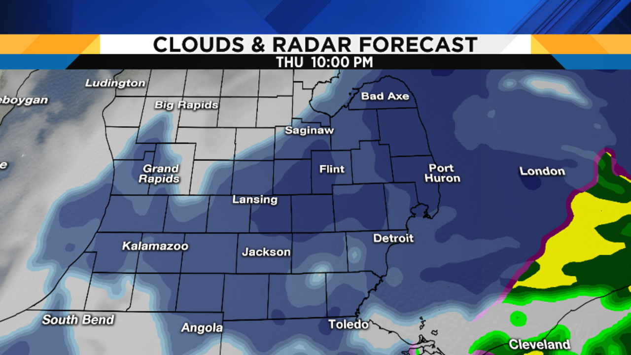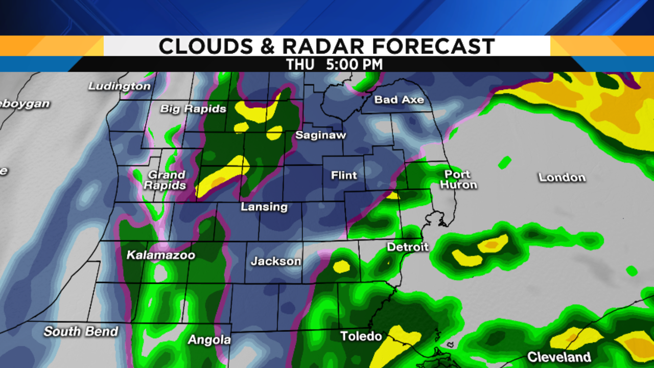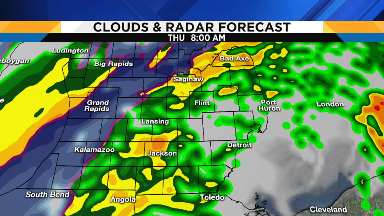 By the end of the afternoon, some of us north of I-69 and west of US-23 may start seeing some wet snowflakes. If you are driving up north on Thursday, be aware that treacherous driving conditions may develop up that way.